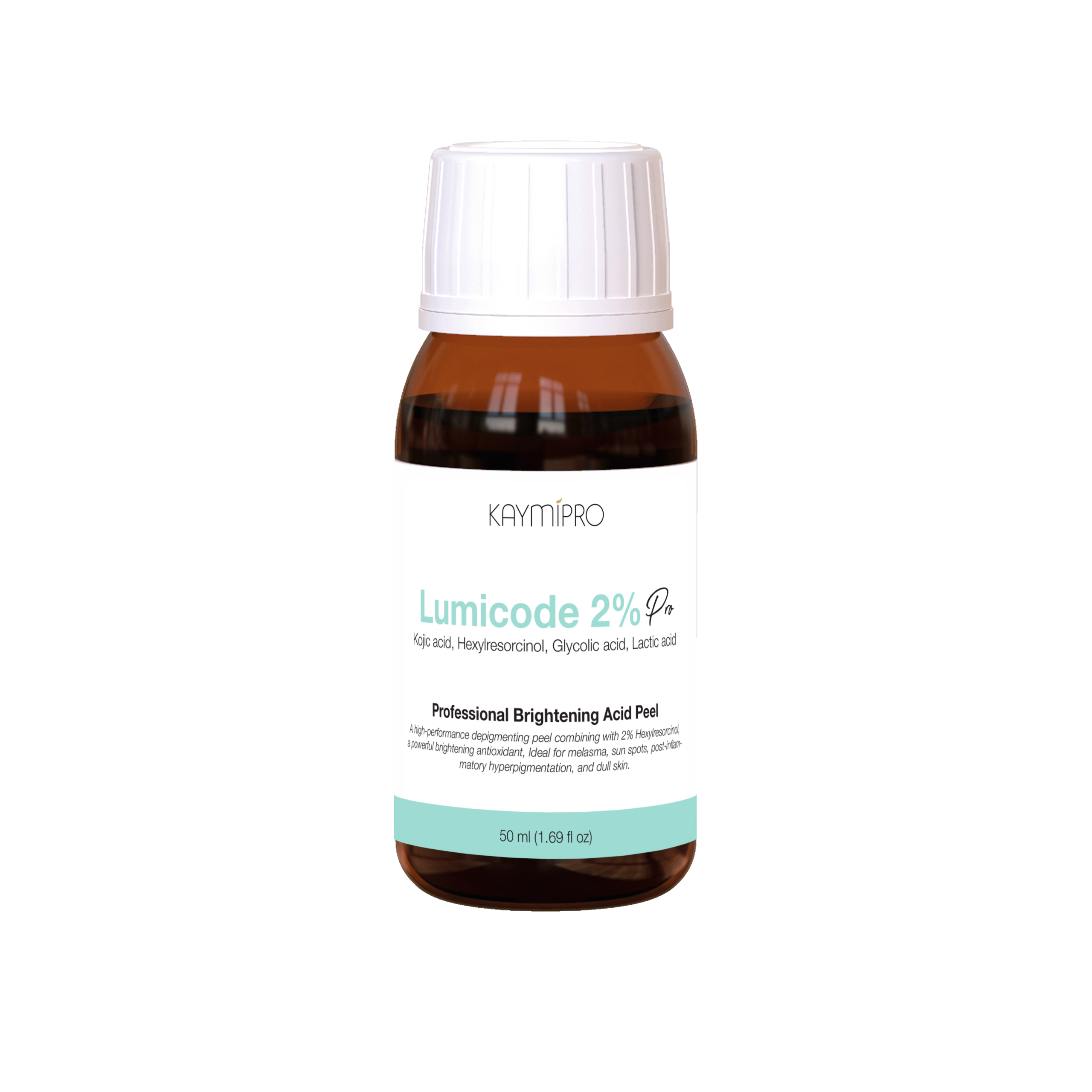 Lumicode 2% Pro is an advanced depigmenting and brightening solution designed to target stubborn hyperpigmentation, melasma, and uneven skin tone. Formulated with a professional-grade concentration of active brightening agents that work by regulating melanin synthesis and supporting cell renewal, it helps improve skin clarity. Suitable for post-inflammatory hyperpigmentation and sun-induced discoloration, Lumicode 2% Pro helps enhance overall radiance and tone uniformity.
